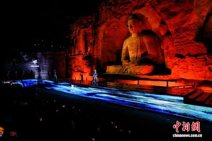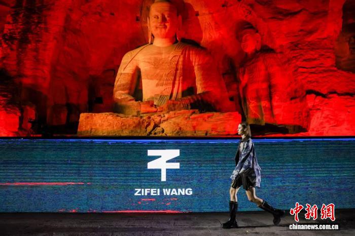图为举动现场。宋好烨 摄 秀场以“浑沌”“撞碰”“已去”3年夜篇章睁开,云冈石窟的卷云纹、夔龙纹等古代纹样经笼统化设想,经由过程刺绣、3D挨印等工艺出现于装束。皮革取苏绣、宋锦取欧根纱的材量撞碰,恢复北魏“褒衣专带”形造,智能里料更随体暖转变模仿石窟岩壁量感。 模特正在光影交叉的T台下行入,如挪动的数字化石窟,解释“让文物收声,使汗青可穿着”的创意观念。